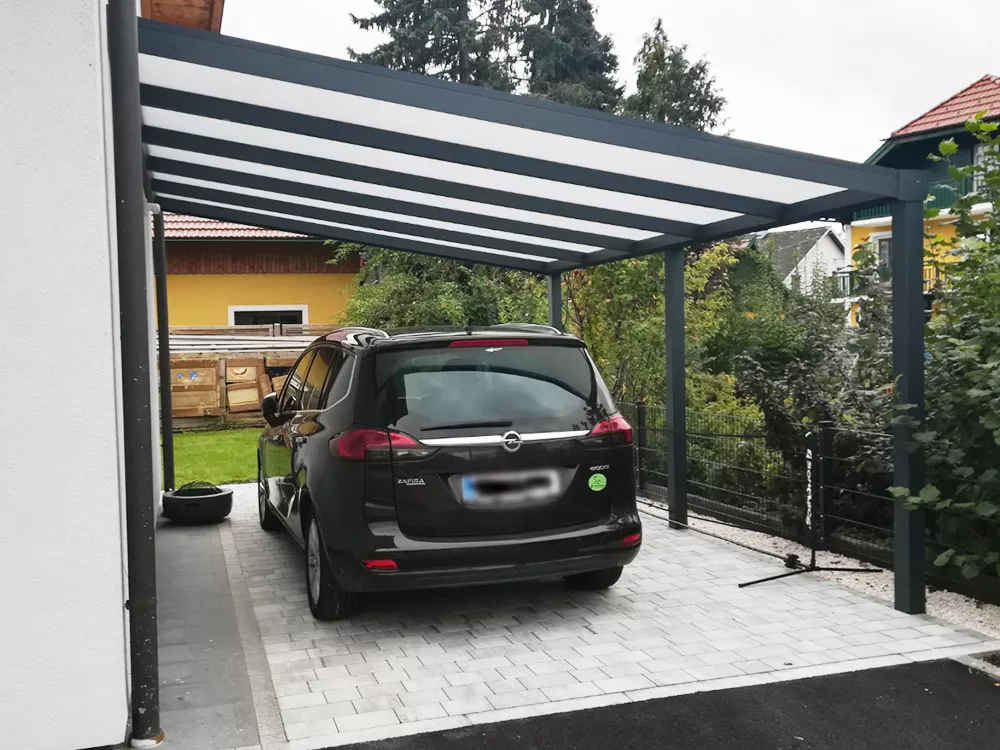 Unsere Carports sind in verschiedenen Größen, Dachformen und Ausführungen erhältlich und können individuell an Ihre baulichen Gegebenheiten angepasst werden. Ob Einzel- oder Doppelcarport, freistehend oder wandmontiert, für private Wohnhäuser, Wohnanlagen oder gewerbliche Objekte – wir bieten flexible und maßgeschneiderte Lösungen, die Funktionalität und Design perfekt verbinden.